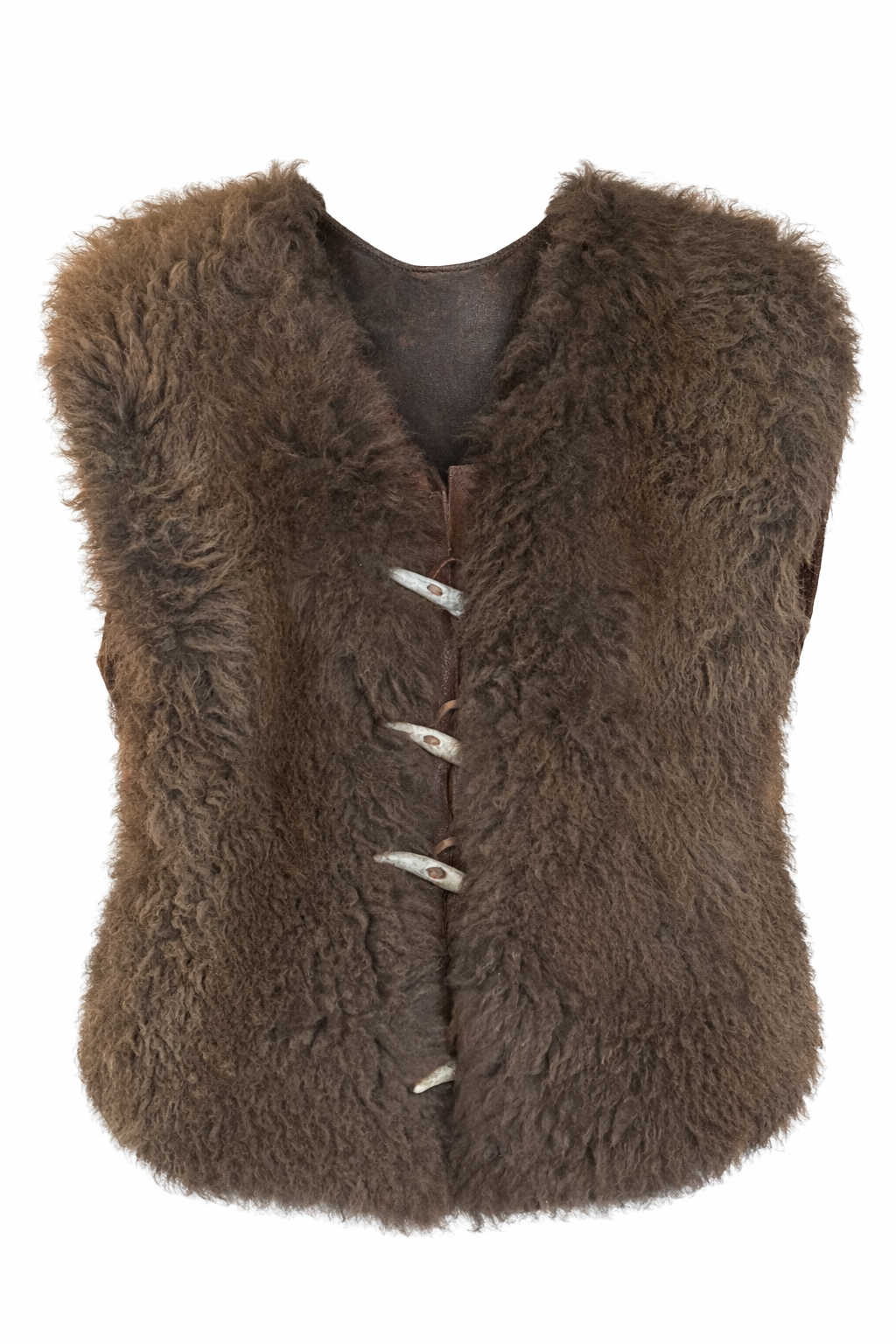 Each vest is individually handcrafted, showcasing the rich variation and depth that only natural buffalo fur can provide. The dense fur exterior creates a bold, rustic look, while the durable leather interior ensures long-lasting structure and comfort. Natural horn-style, claw or teeth toggles add a traditional touch, reinforcing the heritage craftsmanship behind the piece.